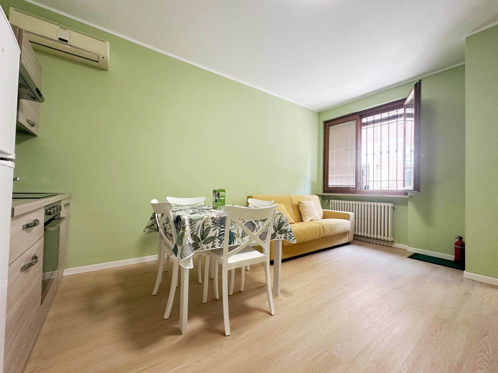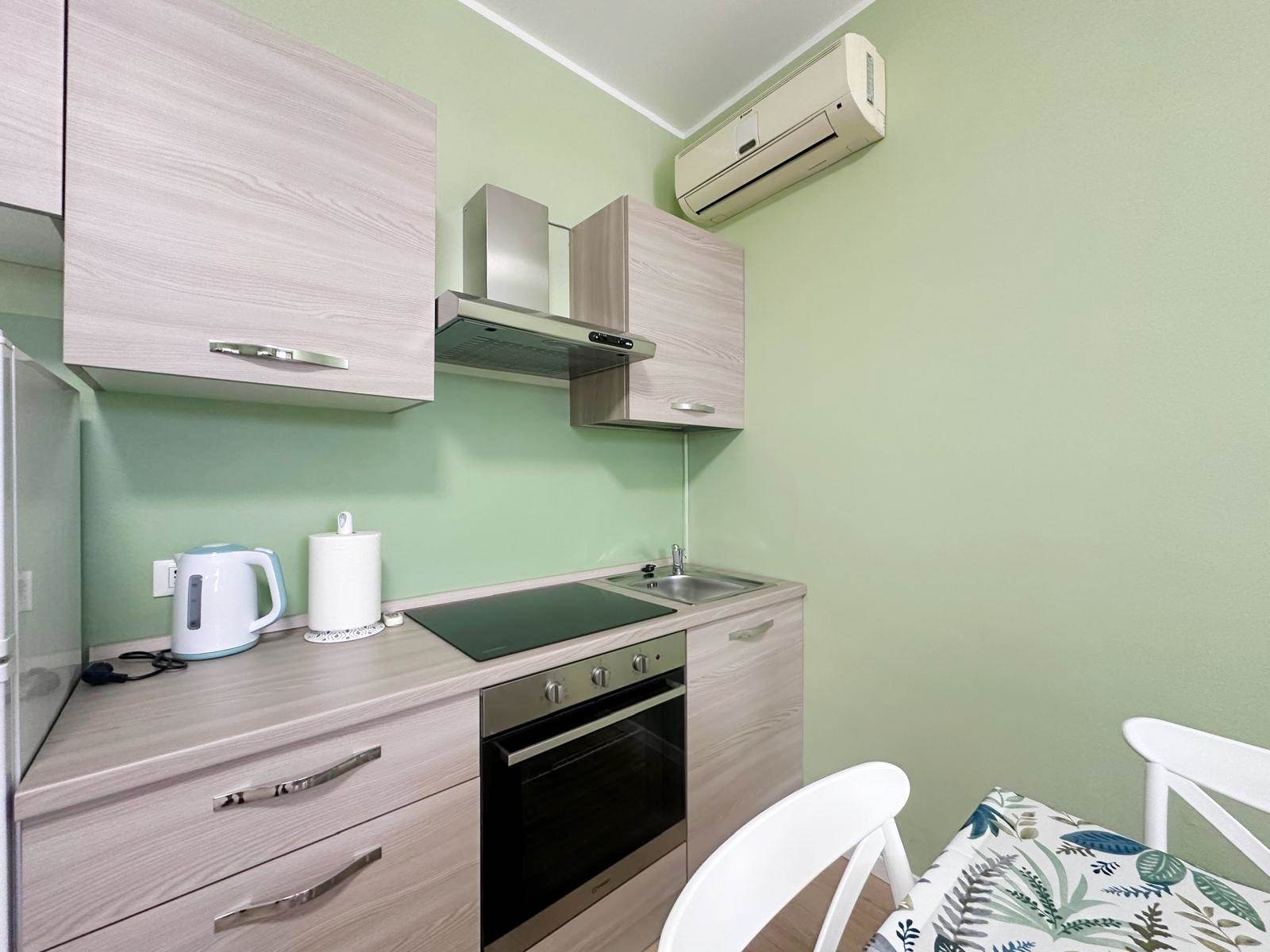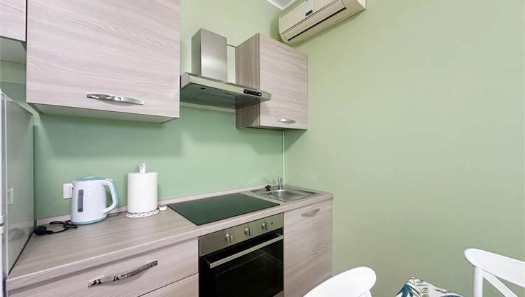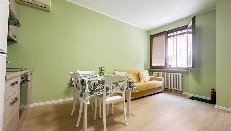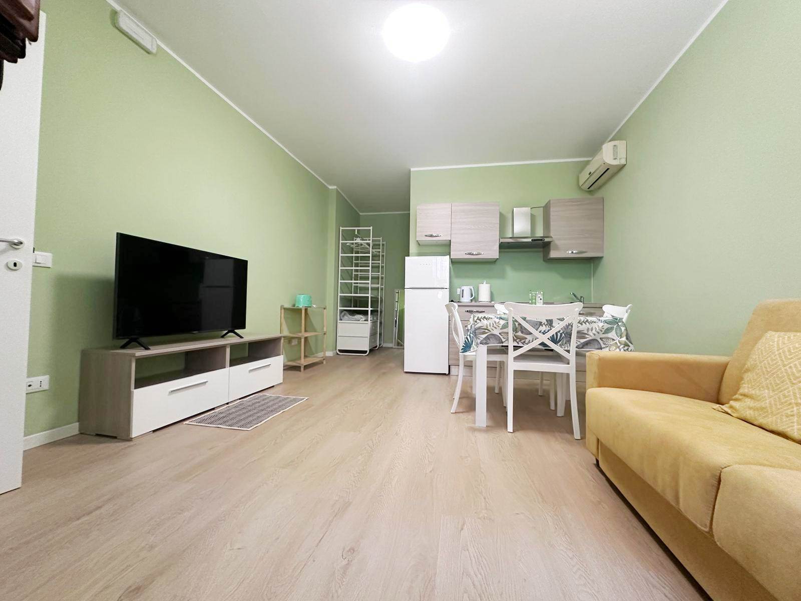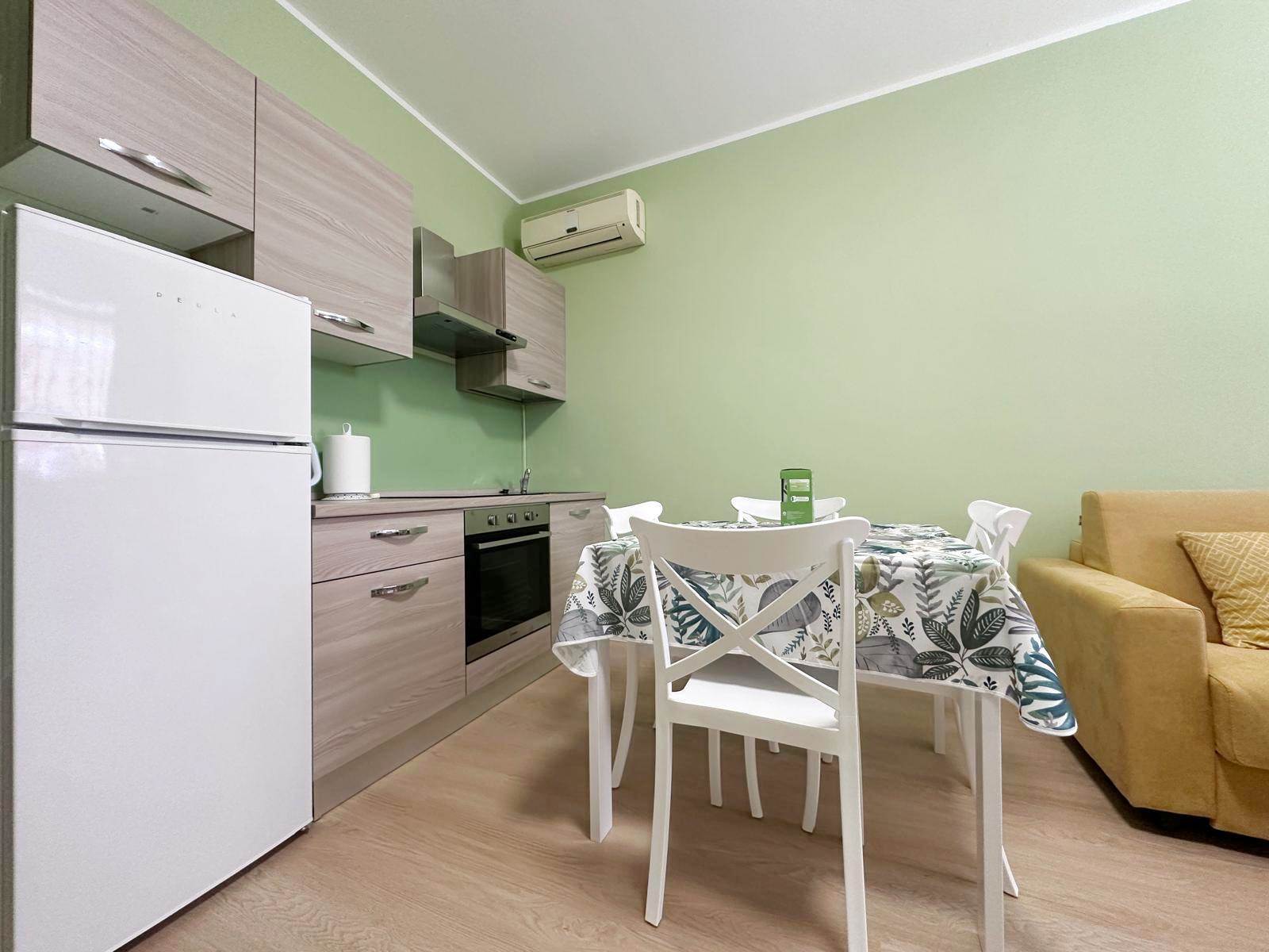 - Lo spazio è composto da una zona giorno con divano letto matrimoniale, cucina a vista completamente attrezzata (fornelli a induzione, tostapane, pentole, bollitore, macchina del caffè) e TV. A disposizione anche aria condizionata e un ampio armadio per il tuo comfort.