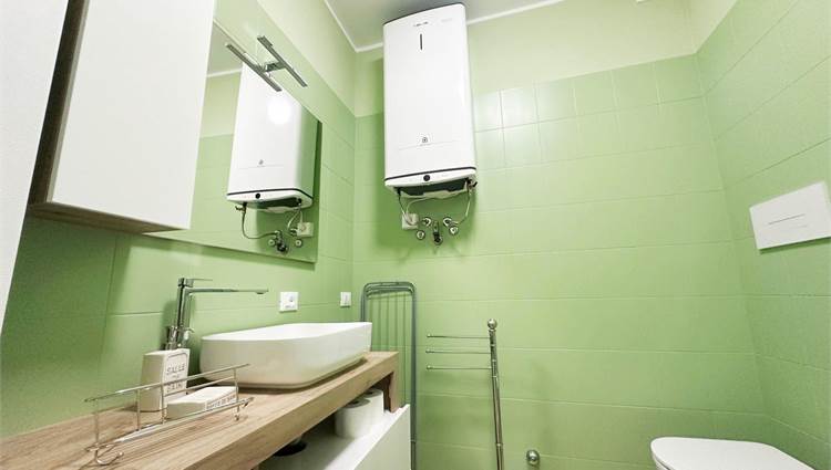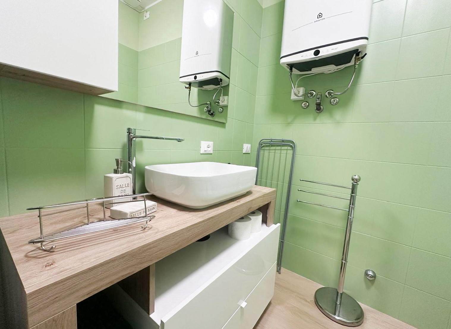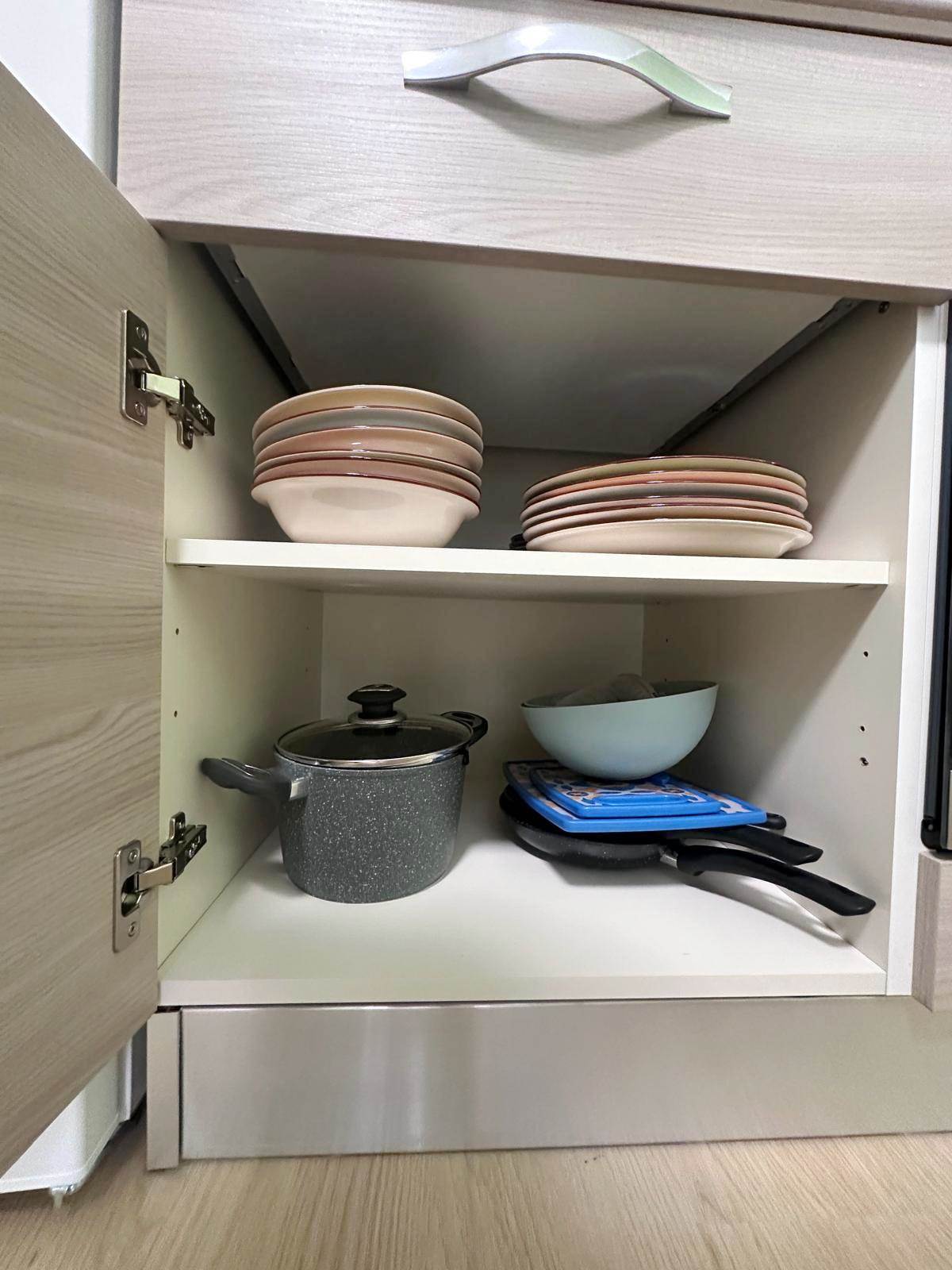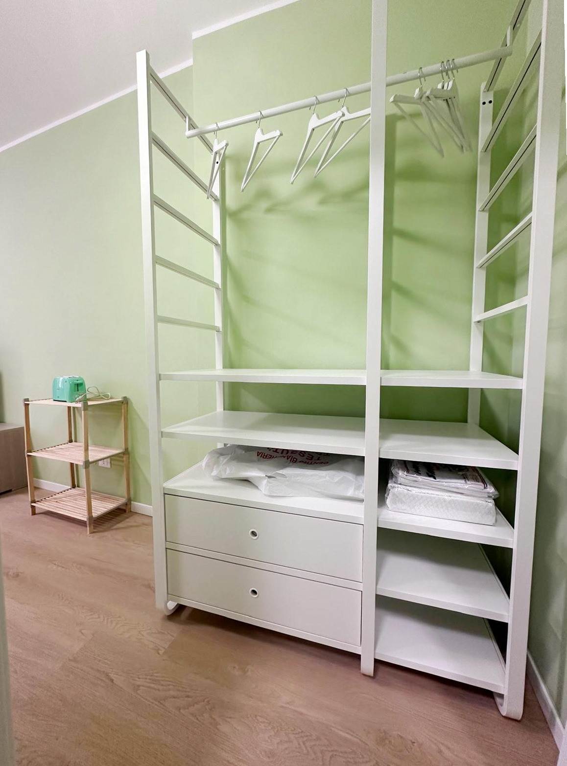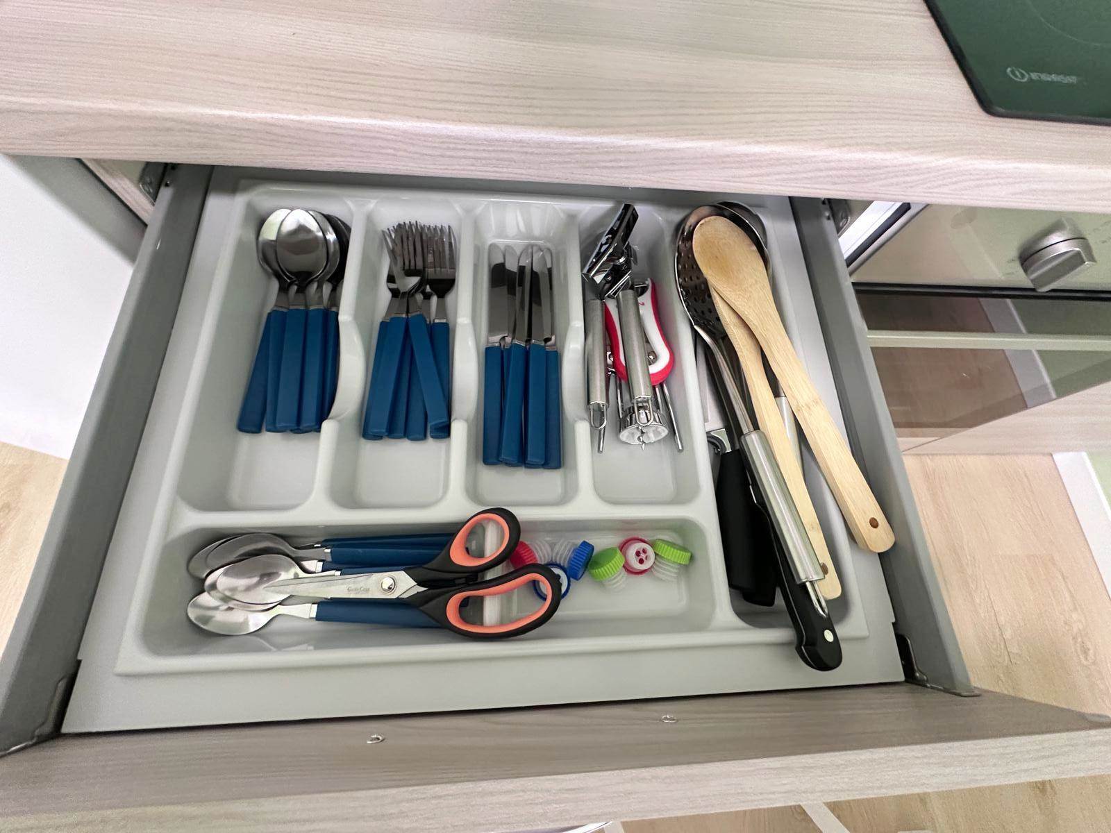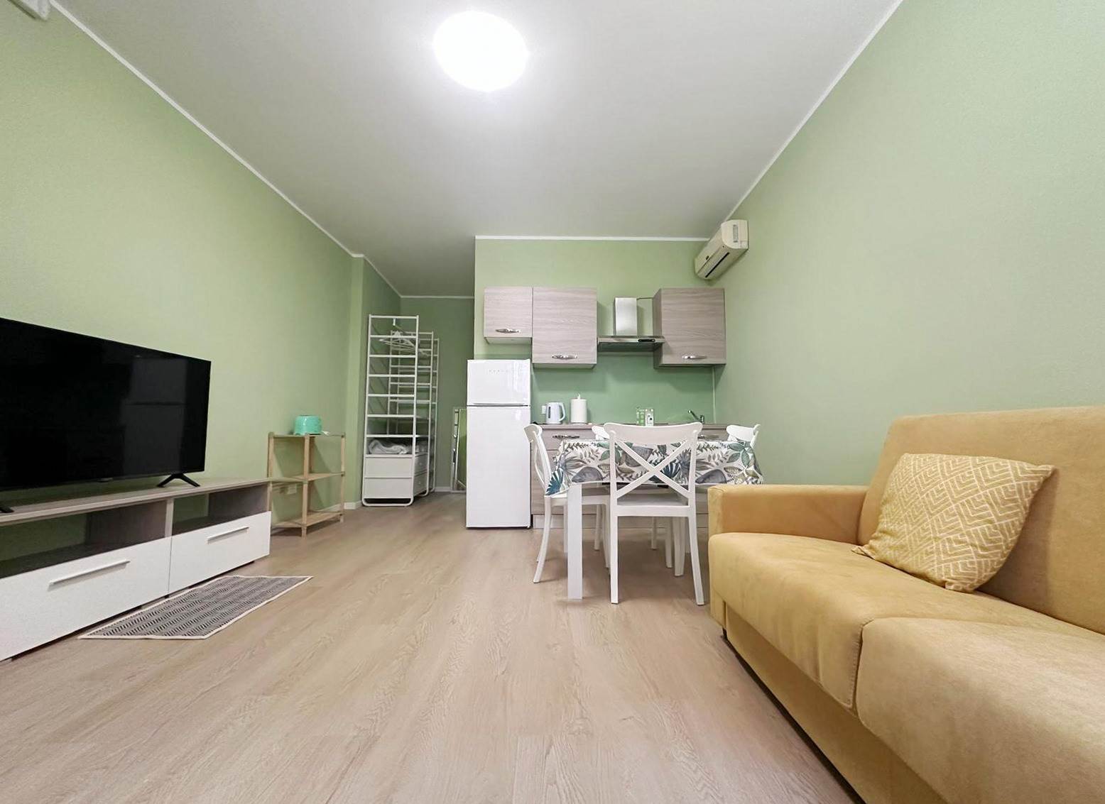 - Lo spazio è composto da una zona giorno con divano letto matrimoniale, cucina a vista completamente attrezzata (fornelli a induzione, tostapane, pentole, bollitore, macchina del caffè) e TV. A disposizione anche aria condizionata e un ampio armadio per il tuo comfort.